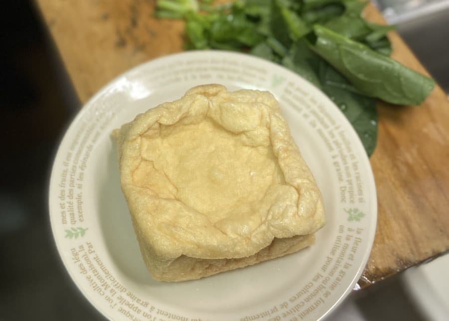 特徴としては中身までしっかり揚げられ、豆腐に厚揚げの衣をつけたような厚揚げとはものが違います。